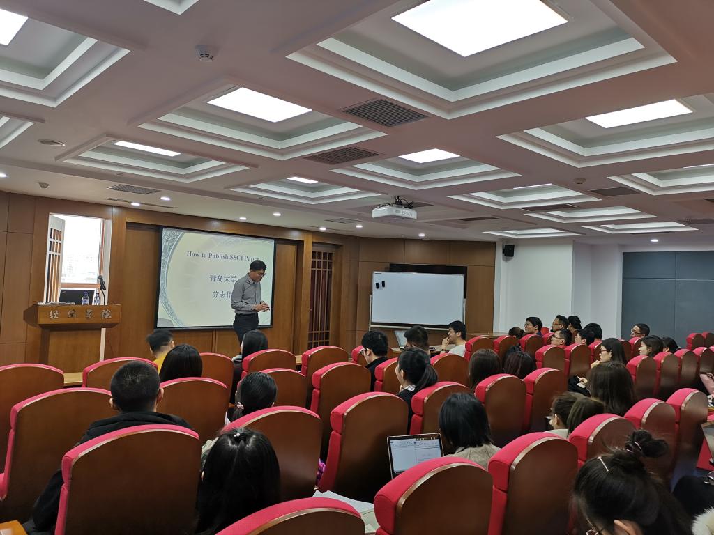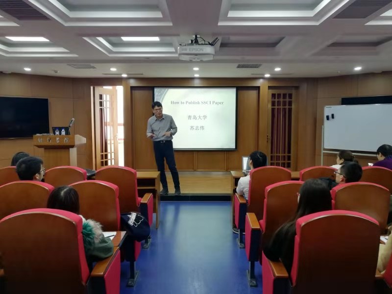 苏志伟教授是青岛大学特聘教授,教育部新世纪优秀人才,以第一或通讯作者发表论文150多篇,其中SSCI论文128篇,包括了Energy Policy, Resources Policy, Urban Studies,Economic Modelling, International Review Economic and Finance, Journal of International Trade & Economic Development, Emerging Markets Review, Economics of Transition等高水平SSCI期刊。本次讲座苏志伟教授结合自己的研究经历,对于如何写一篇好的SSCI论文,从思想到框架再到细节,做了生动、详细的阐述。
