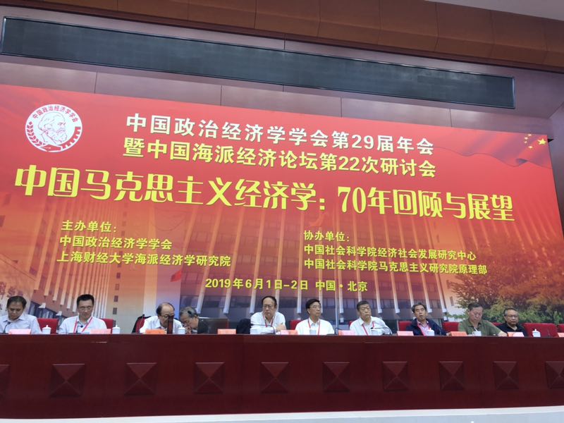 2019年6月1-2日,中国政治经济学学会第29届年会在中国社会科学院学术报告厅隆重举行,本届年会主题为“中国马克思主义经济学:70年回顾与展望”。中国社会科学院特邀顾问、原副院长、中国政治经济学学会顾问刘国光学部委员,中国社会科学院副院长高培勇学部委员等来自国内顶级科研机构、中共中央党校和著名高校的200余名专家学者及《人民日报》《中国社会科学》杂志的相关负责人莅会。德赢AC米兰官网德赢vwin官方入口、中国国有经济研究中心纪玉山教授、李政教授、张嘉昕教授及博士生周希禛等参加了本届年会。