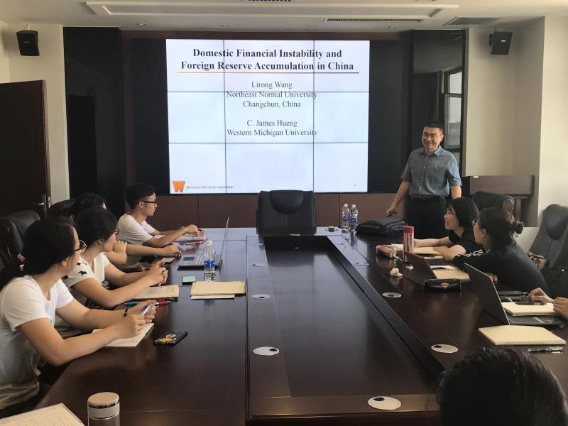 6月6日上午,美国西密歇根大学 C.James Hueng教授在讲授了金融学原理与应用课程后,为德赢官网做了题为“Domestic Financial Instability and Foreign Reserve Accumulation in China”的讲座。德赢vwin官方入口本科生、研究生、留学生参加了讲座。