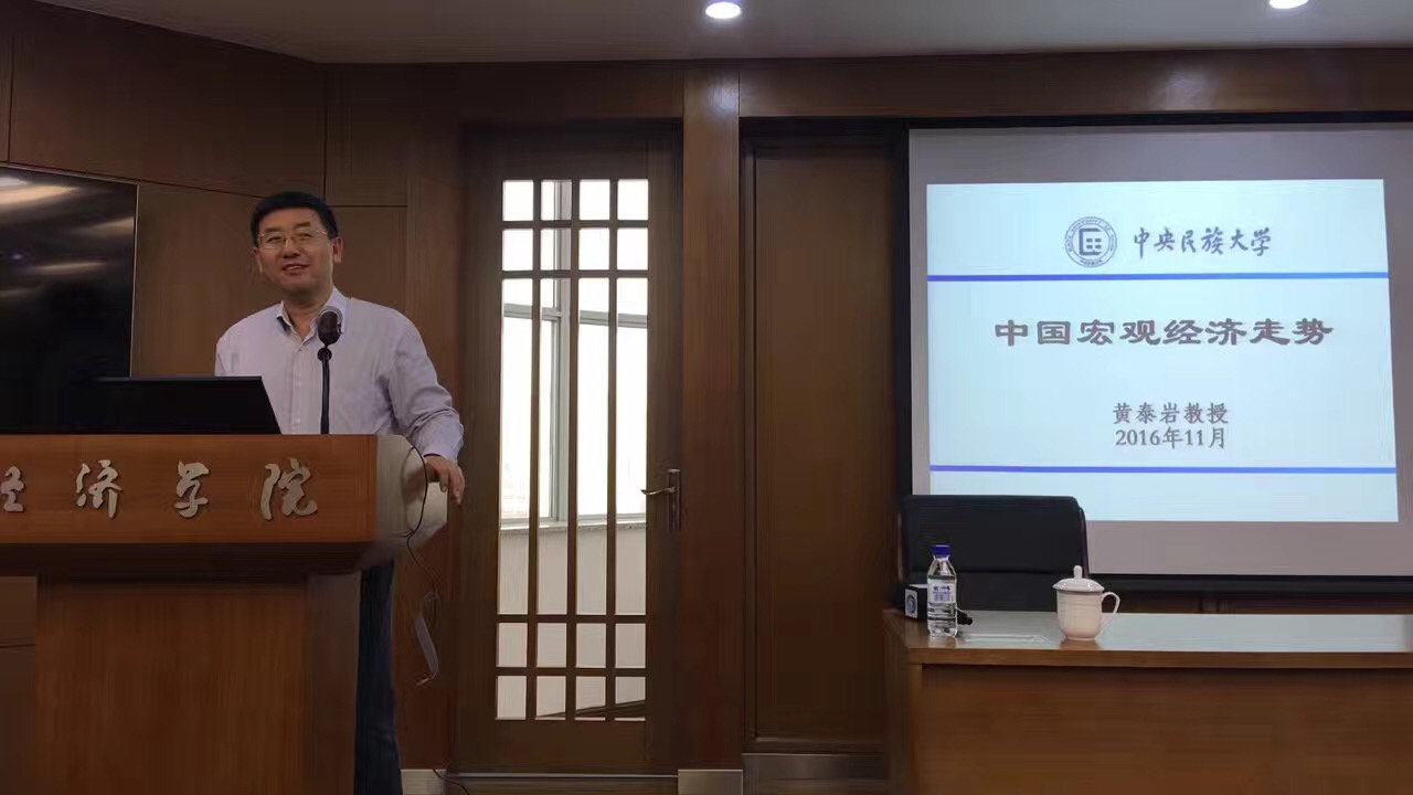 11月21日下午1:30,中央民族大学校长黄泰岩教授应邀来德赢官网做学术报告,题为“中国宏观经济走势”,德赢vwin官方入口副院长史本叶副教授主持了本次讲座。参加此次讲座的有,德赢vwin官方入口副院长李政教授、经济学系赵新宇教授、范欣副教授,财政系宋洋副教授以及德赢vwin官方入口七十余名硕士、博士研究生。