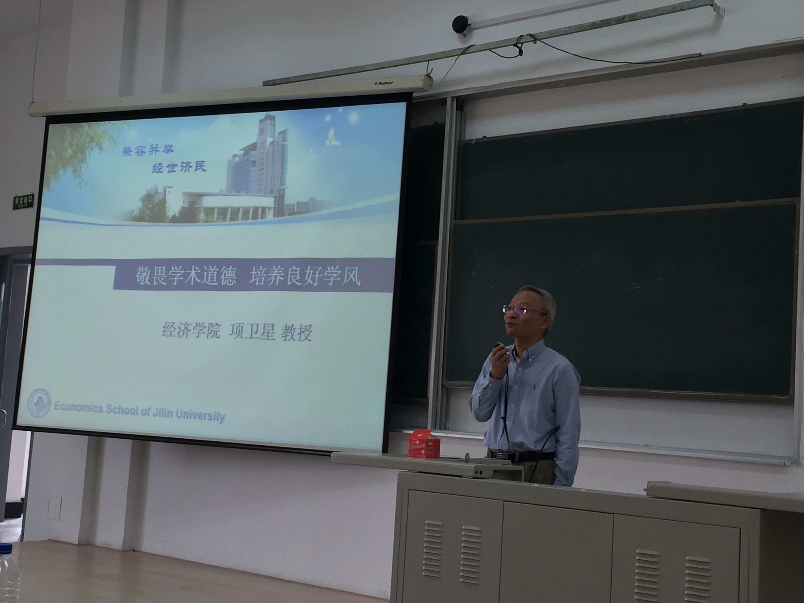 会上,项卫星教授循序渐进、深入浅出的为同学们讲述了“敬畏学术道德,培养良好学风”的重要性,并为同学们详细讲解了在实际科研工作以及论文写作的过程中的注意事项。项卫星教授在讲授中指出,每一位研究生在面对学术时都应抱有敬畏之心,维护学术尊严,在论文写作的过程中应秉承严谨、诚信的态度,注重论文的原创性,引用的他人论文或观点时务必要加以注解,尊重他人的劳动成果,加强知识产权意识。他强调,只有形成良好的治学风气,端正的治学态度,才能让学术领域更加纯净。大会的最后,项老师鼓励新生在学术活动中脚踏实地,勇攀科学高峰,不负德赢vwin官方入口对每一位学生的厚望!