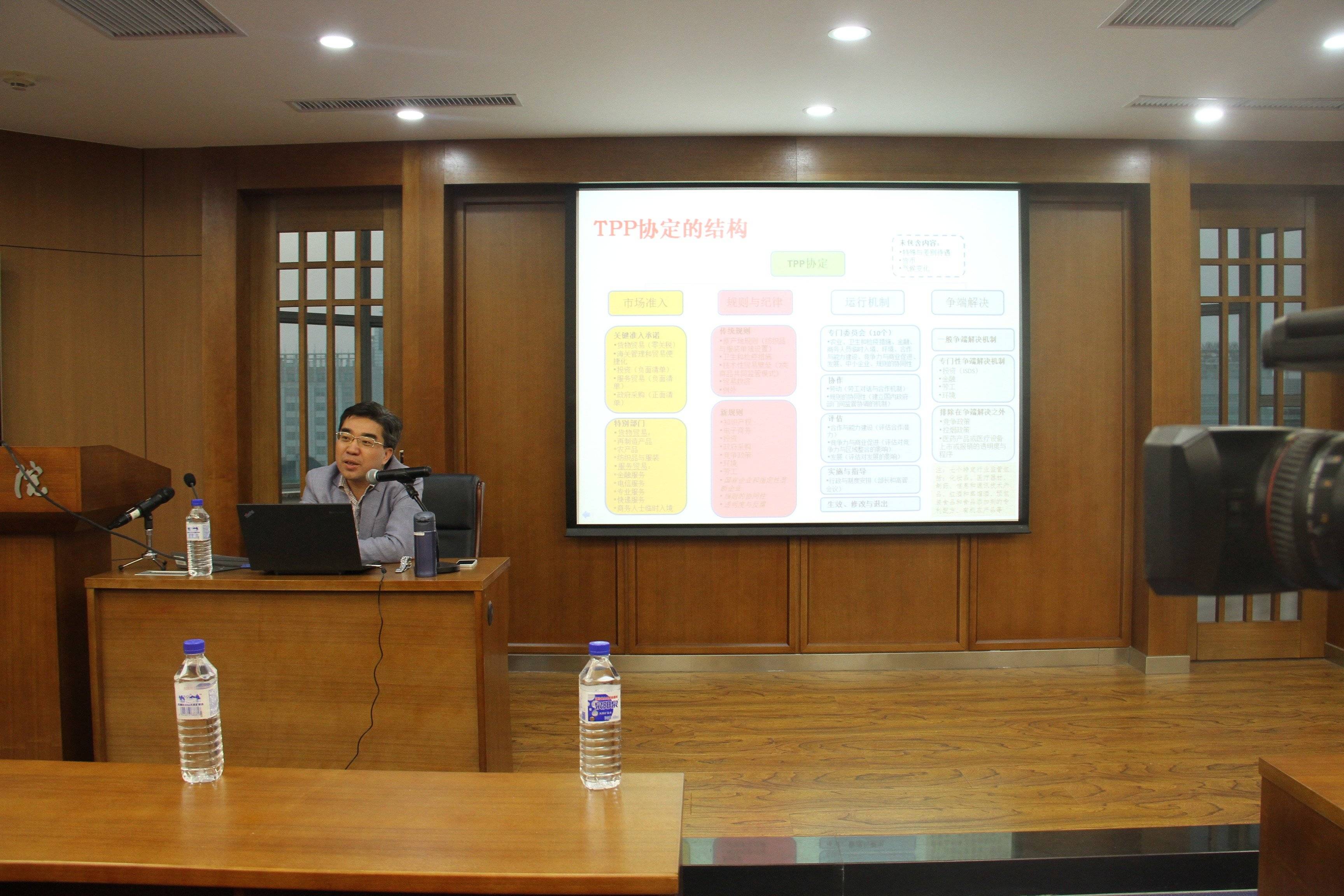 2016年5月18日晚6:30,南开大学研究生院常务副院长、国务院学位委员会学科评议组委员盛斌教授在我校中心校区东荣大厦A804会议室,作了一场题为“TPP、国际贸易投资新规则与中国的应对”的学术讲座。
