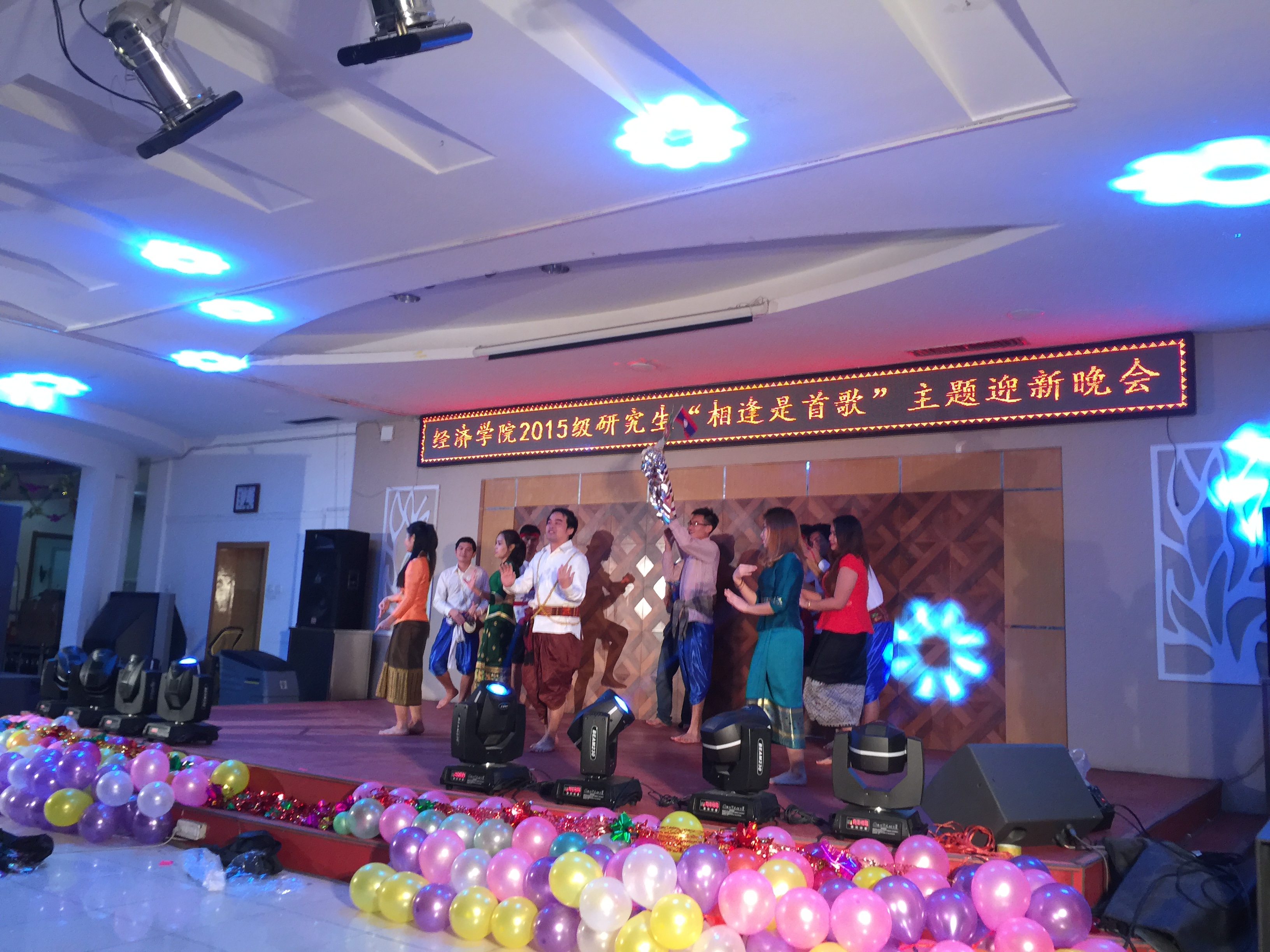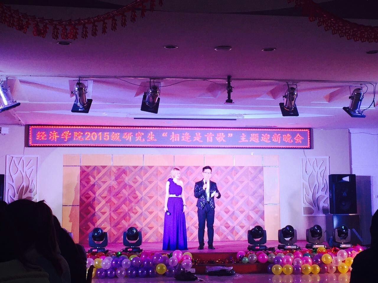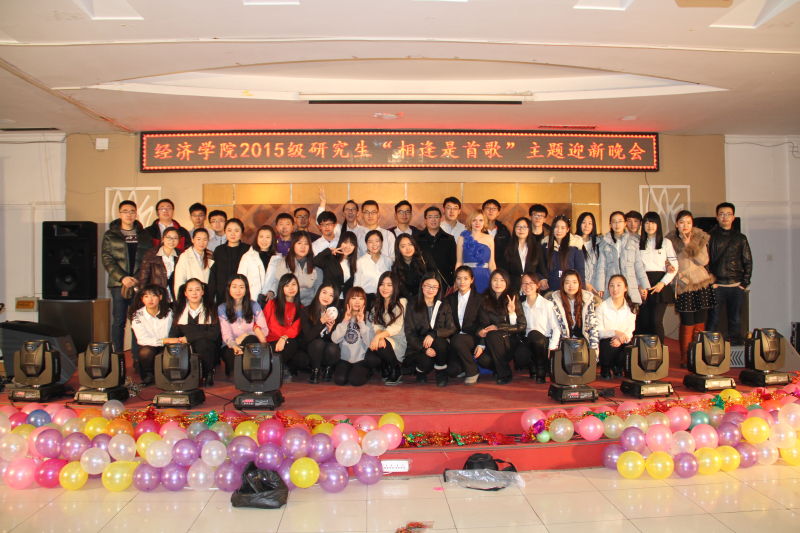 德赢vwin官方入口2015级研究生“相逢是首歌”主题迎新晚会于12月11日晚在莘子园三楼成功举办。德赢vwin官方入口党委副书记张倩老师、经济系赵新宇教授、金融系周佰成教授、外籍教师海森特老师,学院办公室郭薇老师、张坤老师、高杉老师,以及全体2015级研究生和留学生同学共同参加了此次晚会。