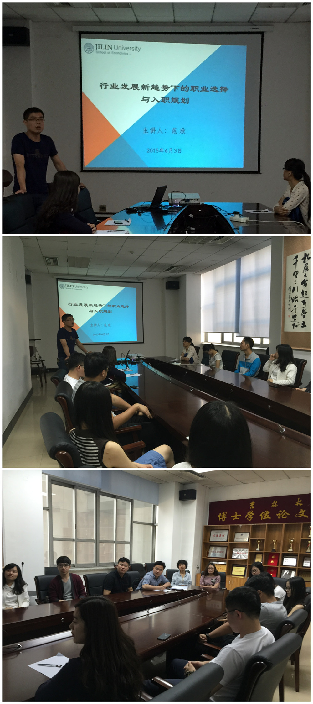 2015年6月3日下午,德赢官网研究生就业创业指导活动系列(一)——行业发展新趋势下的职业选择与入职规划讲座在东荣114室成功举办,本次职业规划的主讲人是德赢vwin官方入口研究生会前任主席,曾担任外企董事长特别助理、高级项目经理等职的范欣博士。参与本次活动的人员主要有德赢vwin官方入口2013级、2014级研究生及部分本科生,他们面临就业创业的选择以及如何做好职业规划等问题,本次活动迎合了大学生就业创业难的社会现象,获得了同学的广泛支持。