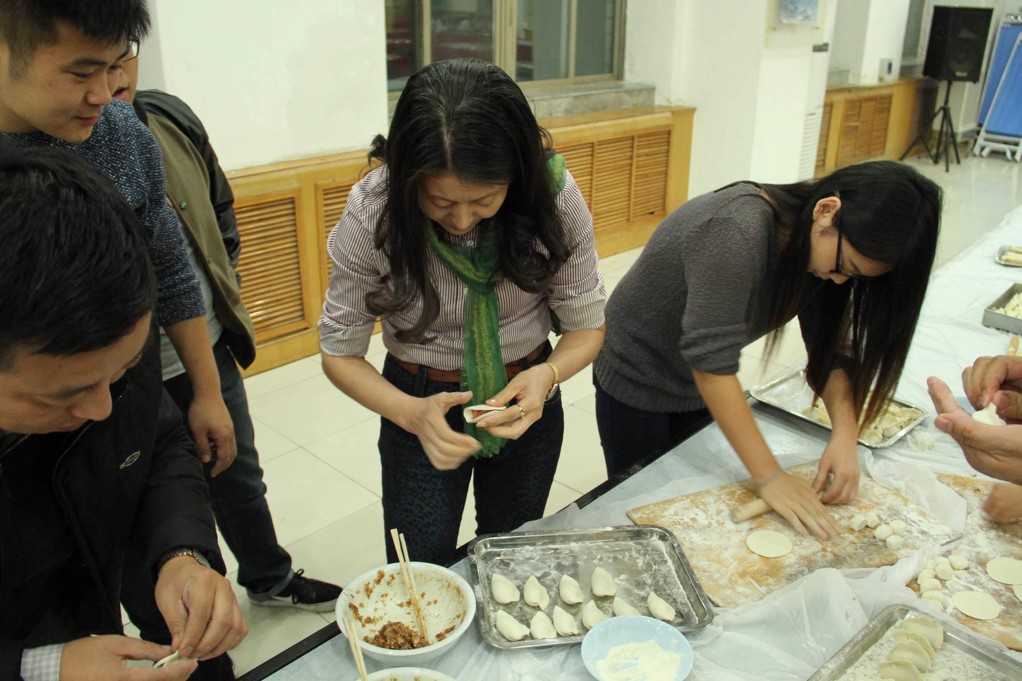 活动最初,通过视频短片帮助留学生同学们进一步了解了“立冬”这个中国传统节气的由来及习俗。首先进行的包饺子比赛气氛热烈,中国同学热情地帮助留学生同学们学习擀皮儿、捏褶儿、包饺子,大家你争我赶,忙得不亦乐乎,尤其是老师们的加入使现场气氛更加热烈、掀起高潮。接着,为了展示中华民族的传统文化,进行了中国传统工艺——中国结和剪纸的比赛活动。活动中中外学生齐心合力,制作出了一个个精美的中国节和一幅幅惟妙惟肖的剪纸作品。经现场同学投票评选出中国结及剪纸作品优秀奖,分别由张倩副书记、秦川副院长进行了颁奖。最后,大家围坐一桌吃上了自己包的热腾腾的饺子,中外学生密切交流,气氛热烈融洽。
