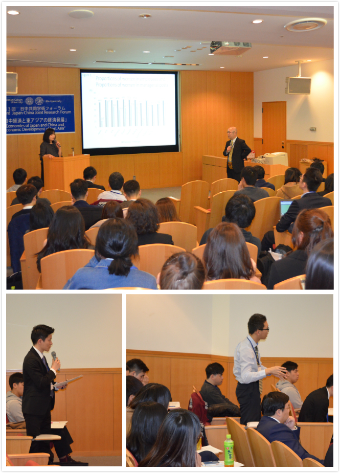 丁一兵教授做了题为“China's Economic Relations with Surrounding Countries and the Belt & Road Initiative”的报告,讨论了一带一路战略实施下我国与周边国家之间的经济合作模式与展望。同时又为中日双方的本科生讲解了题为“The Commodity structure of China's Trade with the B&R Countries and the Internationalization of the RMB”,讨论了一带一路战略实施下我国人民币国际化推进的相关问题。西村智教授做了题为“Determinants of Non-Managerial Women’s Ambition for Promotion ”的报告,讨论了日本女性在职场中地位的提高问题。