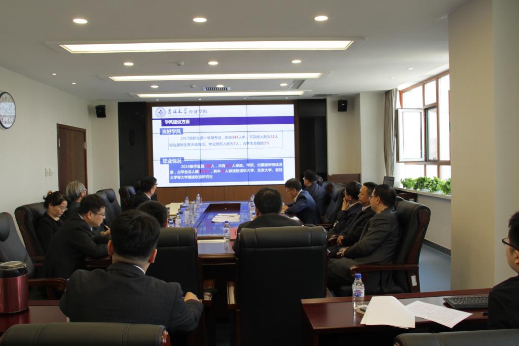 首先,学院主管本科生工作副书记兼副院长赵勇围绕德赢vwin官方入口学生工作基本情况、部分重点工作开展情况以及目前存在的问题和不足三方面进行了汇报。随后,德赢vwin官方入口党委书记陈密结合学院实际提出了学院在辅导员队伍建设和学生培养中面临的困难和挑战。德赢vwin官方入口院长李晓就如何提升大学生素质方面提出了几点意见和建议。接着,经济学院主管研究生副书记张倩从学院研究生基本情况、思想政治建设工作开展情况以及存在困难和问题三个方面进行了汇报。主管本科生教学工作副院长王倩和主管研究生培养工作副院长丁一兵分别围绕自己分管的工作介绍了学院相关工作开展情况。会上,与会人员畅所欲言,就目前涉及学生工作的多方面问题进行了积极有效的交流和探讨。
