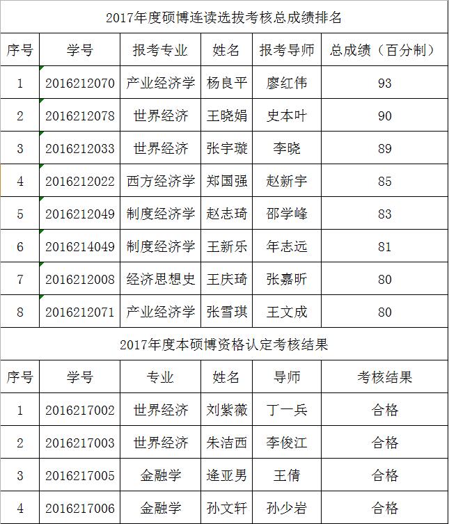 关于2017年度硕博连读选拔及本硕博资格认定考核成绩公示的通知