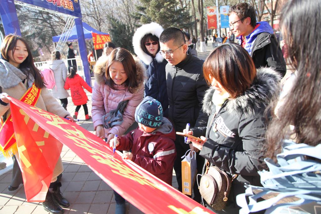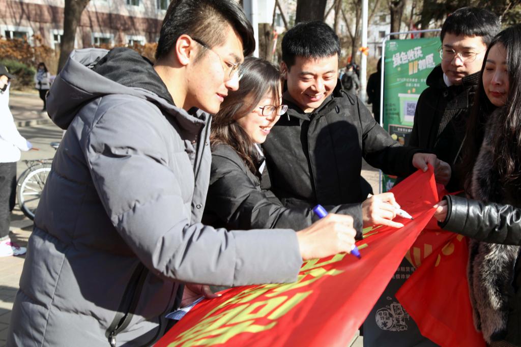 随后,成员带领同学到标有“‘智者同行’远离电信诈骗,维护生态金融”的横幅上签字。