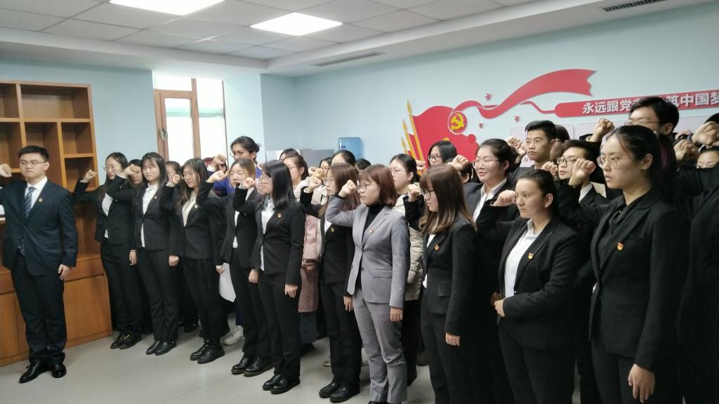 2019年12月12日上午,德赢官网本科生党支部在东荣大厦“党员之家”举办了入党宣誓仪式,学院党委副书记赵勇同志、支部书记田仲金同志、支部书记刘晋禹同志以及2016级和2017级本科生党支部的40名预备党员参加了本次仪式。