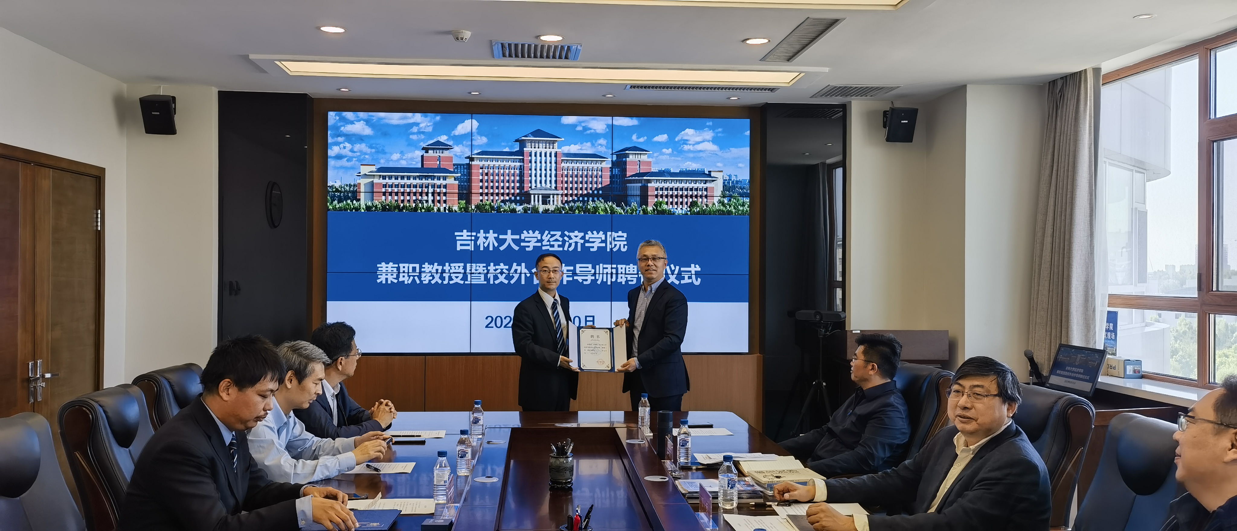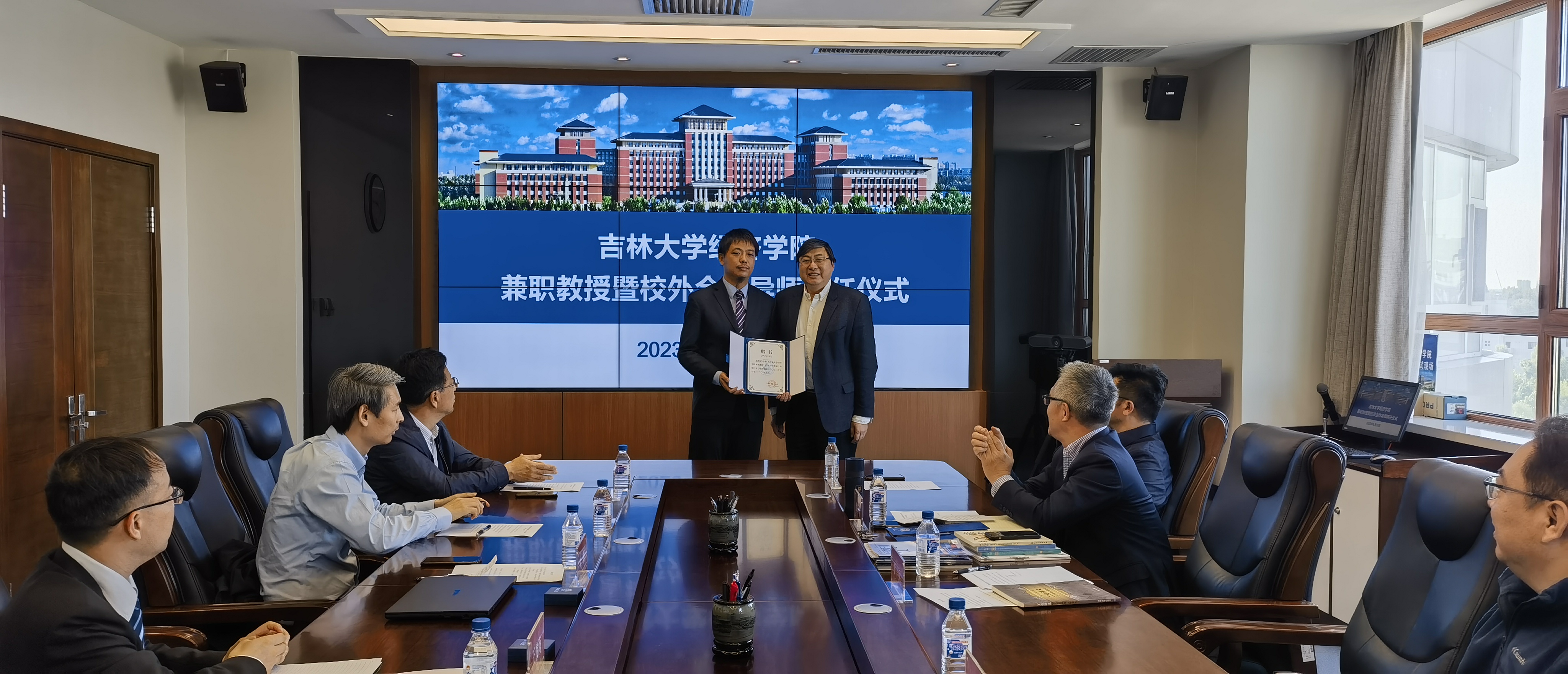 2023年5月10日下午,德赢官网在东荣大厦学院会议室举行了兼职教授暨校外合作导师聘任仪式,财新智库首席运营官叶桐被聘为德赢AC米兰官网德赢vwin官方入口兼职教授、校外合作导师,财新数据科技有限公司高级商务总监王俊海被聘为德赢AC米兰官网德赢vwin官方入口校外合作导师。吉林省养老服务产业基金管理有限公司总经理孔继国、吉林省双佳科技集团股份有限公司董事孟令德、德赢vwin官方入口院长丁一兵、德赢vwin官方入口副院长邵学峰和师生代表参加了仪式。
