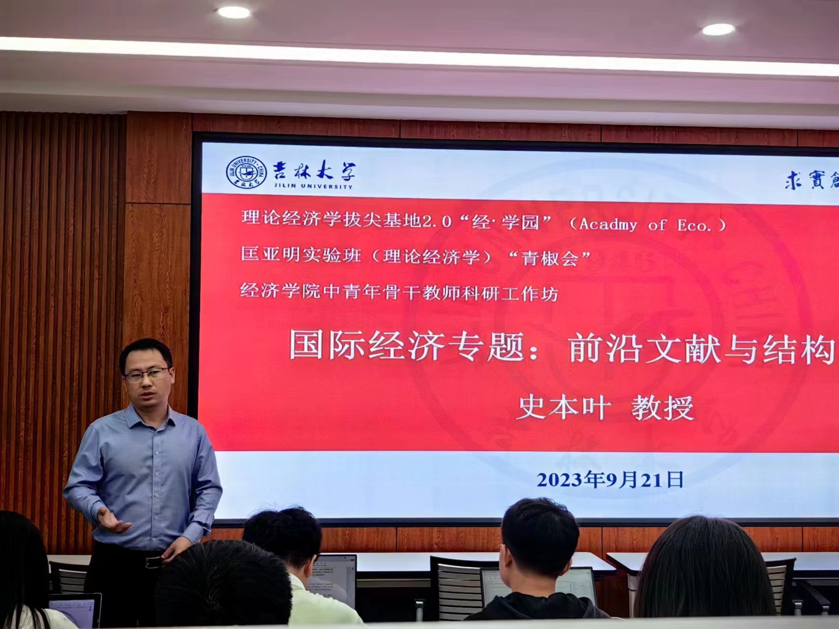 2023年9月21日晚,德赢vwin官方入口教授、博士生导师史本叶举办以《国际经济专题:前沿文献与结构模型》为主题的科研工作坊开放交流系列活动,德赢vwin官方入口部分中青年教师、20余位博硕研究生以及2022级理论经济学基础学科拔尖人才培养计划2.0基地(匡亚明实验班)的全体同学参加。学院分管本科教学、师资的副院长邵学峰教授主持。
