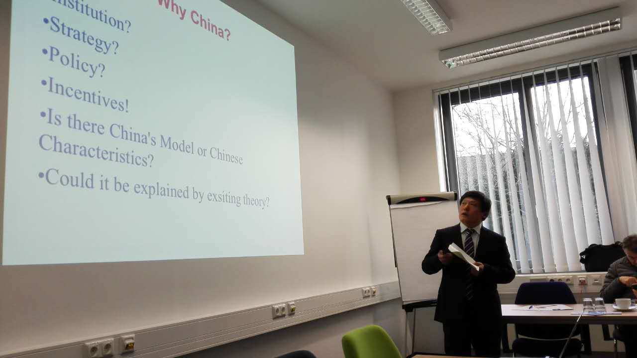 2016年1月21日,李政教授和宋洋副教授、博士生刘阳等应邀赴德国杜伊斯堡参加由德国杜伊斯堡—埃森大学东亚高等研究院和东亚研究生院联合主办的“创新中国:风险,制度和路径”学术研讨会并做主持和演讲。来自德国、英国、丹麦等国的专家学者代表参加了研讨会。研讨会在德国杜伊斯堡—埃森大学,东亚高等研究院代栓平教授的主持下拉开序幕,由德国杜伊斯堡—埃森大学商学院教授、东亚高等研究院主任Markus Taube, 以及德国杜伊斯堡—埃森大学社会学院教授Flemming Christiansen对会议进行致辞并对各国学者表示欢迎;李政教授在研讨会上主持中国创新制度专题研讨并发表相关演讲,宋洋副教授做了题为 “中国制度在创业活动中的角色(The Role of institutions on Entrepreneurial activities in China)”的演讲。均引发与会专家学者浓厚兴趣和热烈讨论。研讨会后,李政教授一行在鲁尔老工业区进行了深入的调研活动。