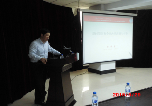 黄群慧所长在讲座中结合专业知识与社会时事,从新时期国有企业改革现状和进展、未来国有企业改革必须完成的几大任务两个方面进行阐述。他提出:我国现今的国有企业已不同于以往,许多企业产权现代化程度已经很高。然而,中国企业“走出去”必然会面临国际上竞争性中立环境所带来的矛盾,而混合所有制的终极目的便是解决这一矛盾。在讲座中,黄群慧所长多次强调国有企业改革的必要性与必然性。