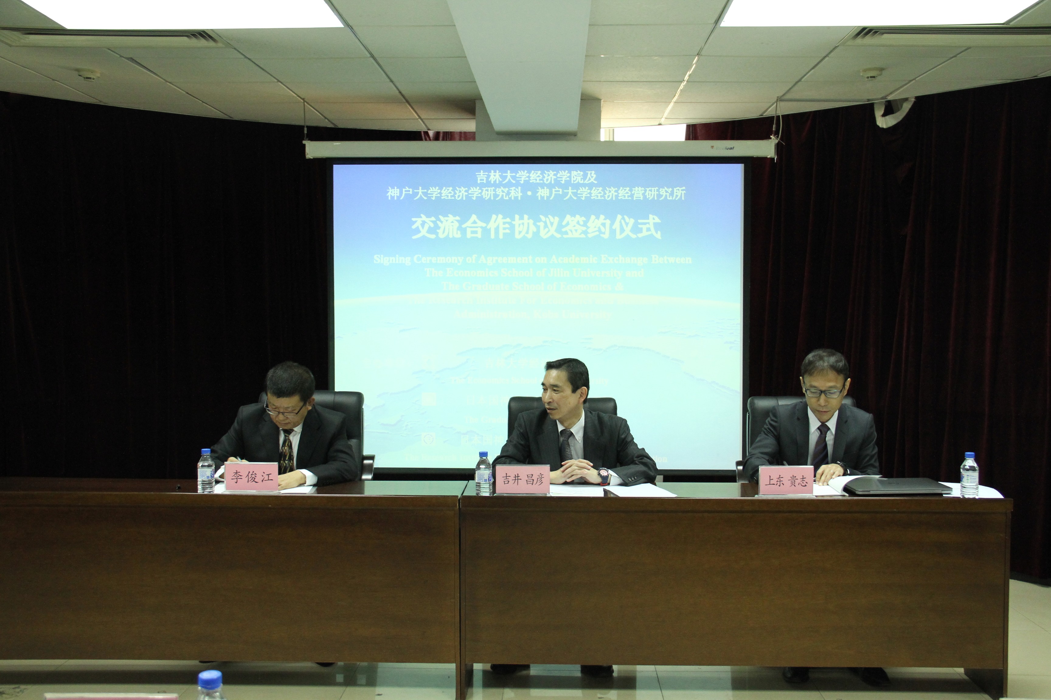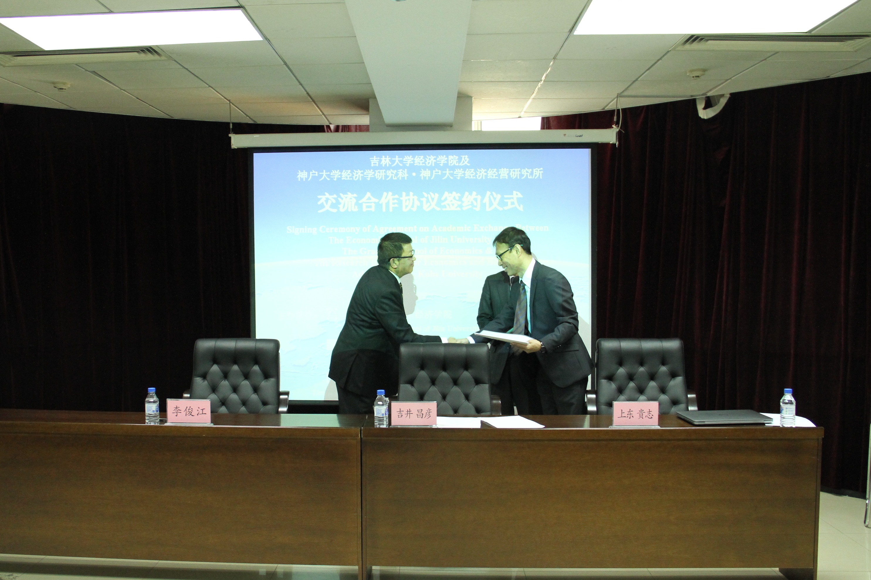 11月21日上午,德赢AC米兰官网德赢vwin官方入口与神户大学经济研究科、神户大学经济经营研究所交流合作协议签约仪式于在东荣大厦804会议室圆满举行。该签约仪式由德赢vwin官方入口副院长李晓教授主持,由德赢vwin官方入口院长李俊江教授和来自日本神户大学的吉井昌彦教授、神户大学经济经营研究所所长上东贵志教授进行签约,出席该签约仪式的还有国际合作与交流处处长张广翠老师、常务副处长李梅花老师以及德赢vwin官方入口王倩教授、丁一兵教授、李玉蓉教授、李俊久副教授、王达副教授和孙黎老师。到场的还有德赢vwin官方入口国际经济系2014级研究生同学。