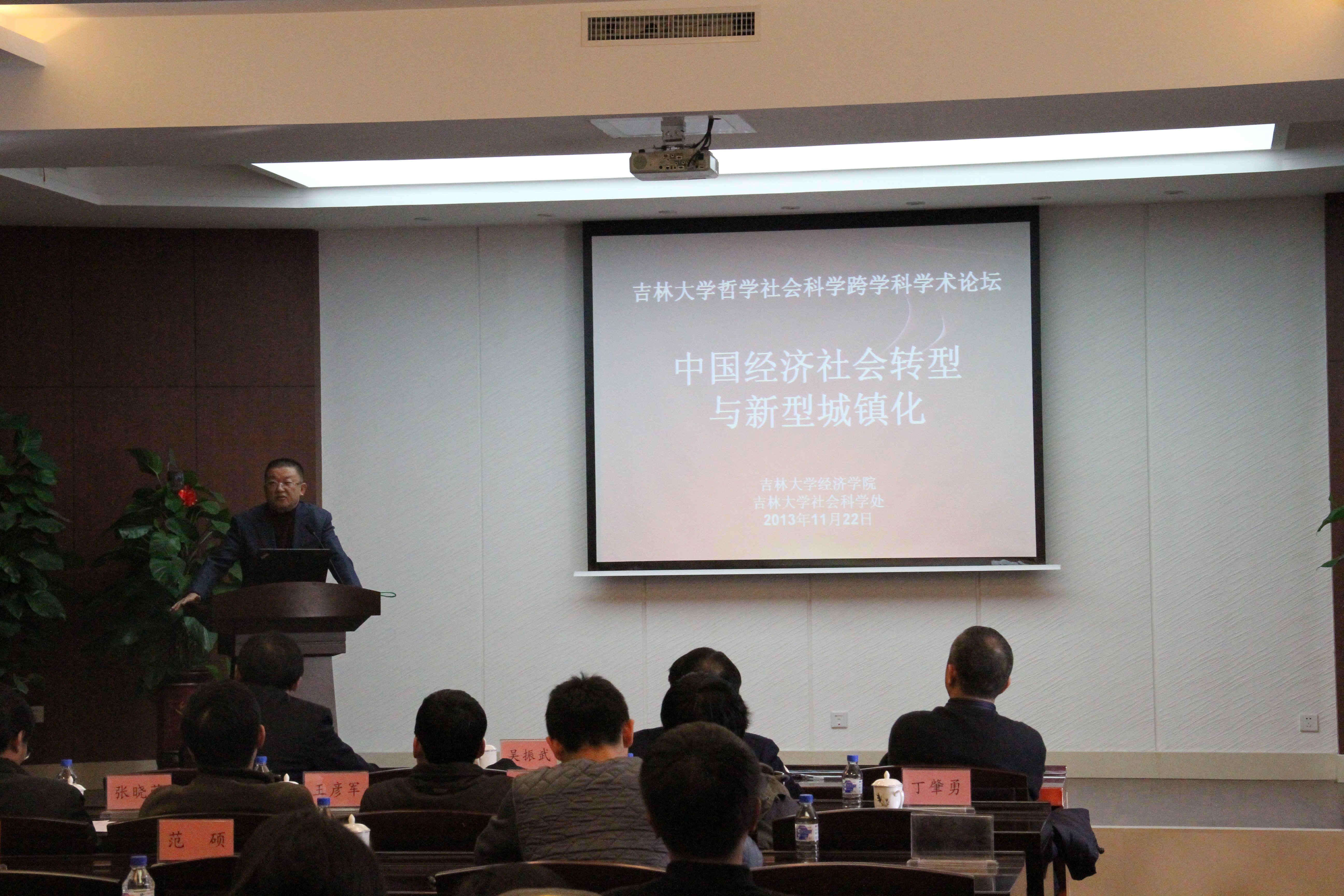 2013年11月22日上午,由德赢vwin官方入口和社会科学处共同主办的哲学社会科学跨学科学术论坛(第十五场)在中心校区匡亚明楼第一会议室举行。本次论坛的主题是“中国经济社会转型与新型城镇化”,德赢AC米兰官网社会科学处霍志刚处长主持了论坛开幕式,德赢AC米兰官网副校长吴振武教授、德赢vwin官方入口院长李俊江教授出席了会议并致辞。德赢vwin官方入口、东北亚研究院、马克思主义学院、哲学社会学院的多名教授参加了本次论坛,并作了主题报告和发表了评论。德赢vwin官方入口研究生、本科生共100余人参加了论坛。