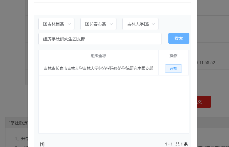 4.信息填写无误后,选择提交即可,管理员审批后,可以看到自己的账号转入到研究生团支部下。