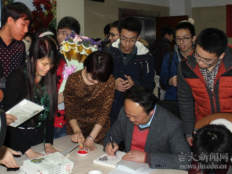 报告会之后的赠书签名活动场面火爆,现场同学感叹一书难求。宋常铁现场题诗环节备受关注,有一位吉大学子拿出自己创作的“残诗”向宋常铁请教,并得偿所愿。