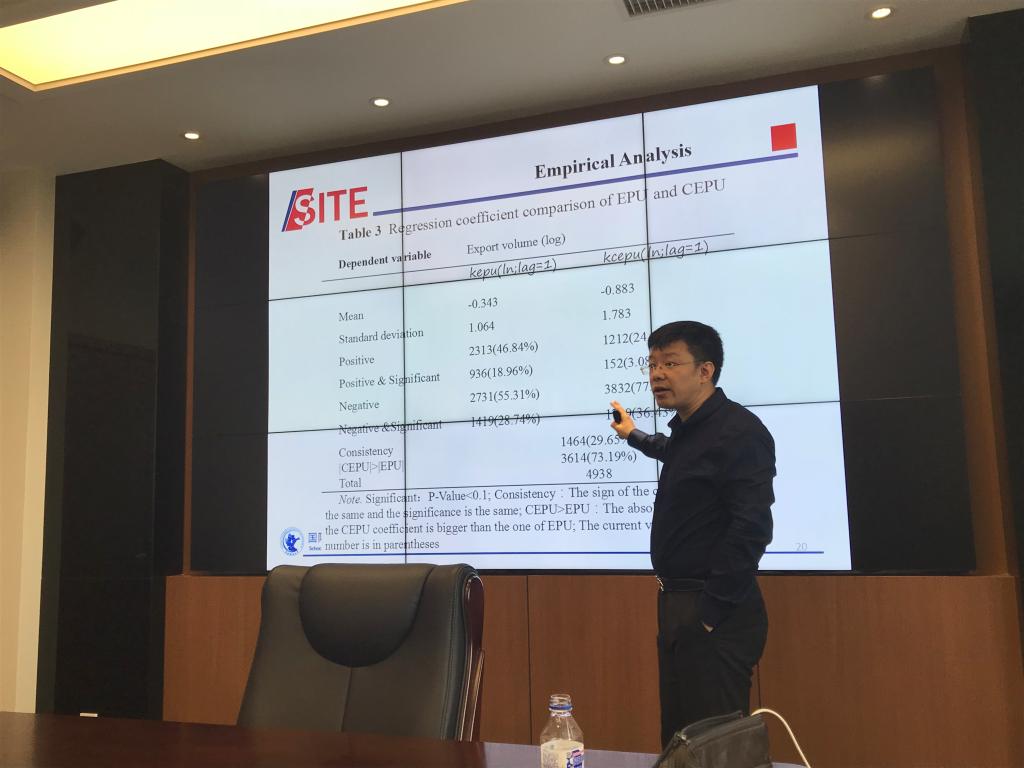 8月25日上午,德赢AC米兰官网德赢vwin官方入口校友、中央财经大学国际经贸学院李兵副教授应邀来德赢官网作学术报告,报告题目为《经济政策不确定性对贸易的产品异质性影响——基于中国报纸的大数据分析》。报告由德赢AC米兰官网德赢vwin官方入口副院长史本叶教授主持,德赢vwin官方入口孙黎副教授及多名硕士、博士研究生同学参加了本次学术报告会。