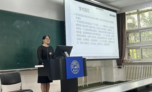 首先,王倩老师代表学院向所有入学新生表达了热烈欢迎,随后,王倩副院长以案例解读的形式介绍了学术不端的常见行为以及学术规范的重要性,并在讲话中强调了研究生阶段学生要加强创新意识的培养以及科研能力的锻炼,以创新为己任,潜心钻研。最后,王倩副院长希望同学们沉下心来做学问,耐住寂寞搞科研,求真务实,严谨治学,在学术攀登的道路上不断进步。