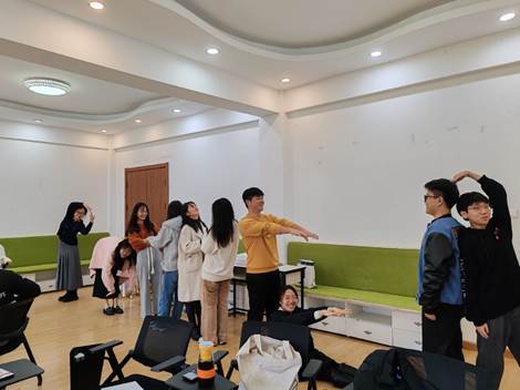 在过渡阶段中,通过“信任之旅”和“人体字母”两个游戏加强同学们的互动,促进团体的交流合作;在“快乐传递”和“信息启迪”两个环节促进了团队成员之间的情感交流,帮助同学们发现彼此的长处和优点,相互鼓励,共同进步。