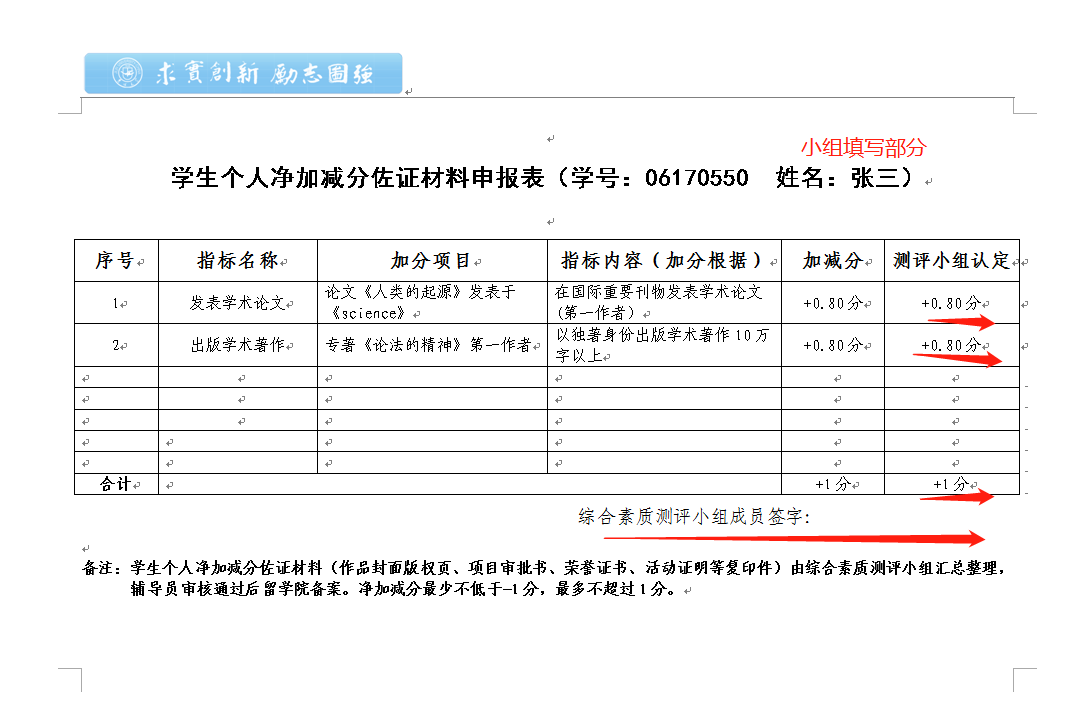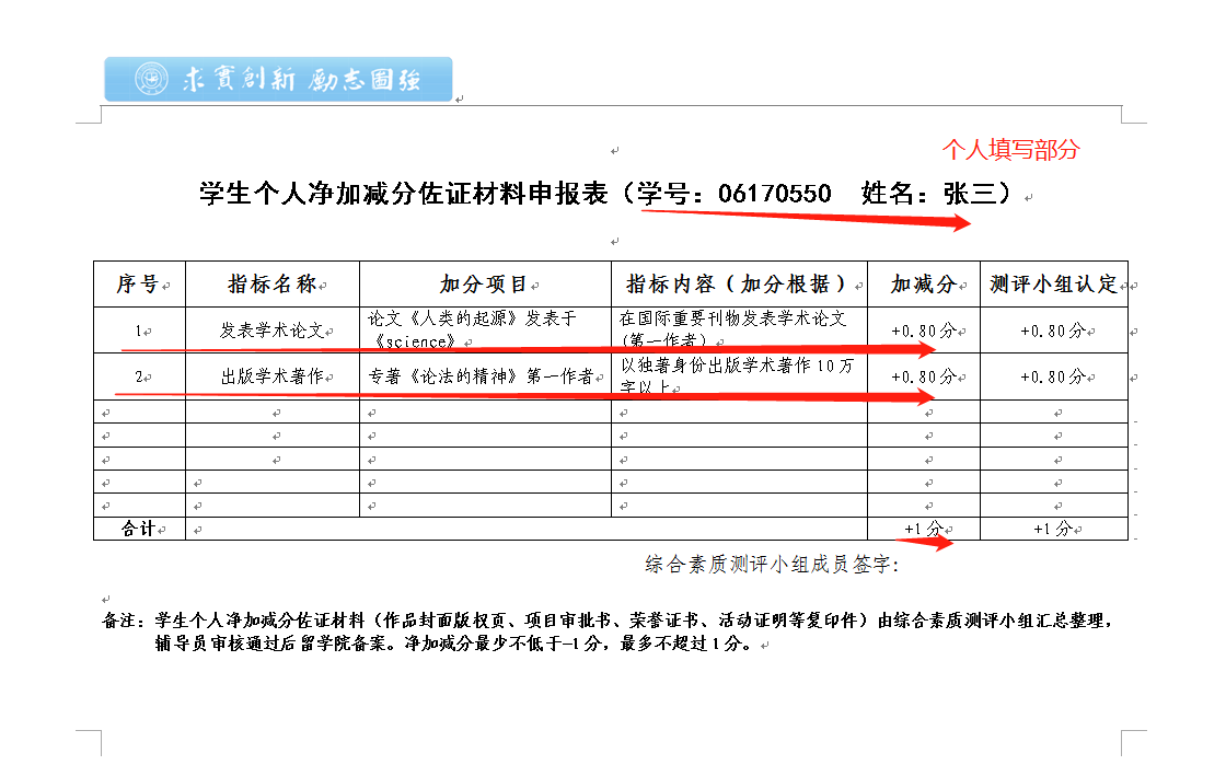 德赢vwin官方入口综合素质测评学生个人净加减分佐证材料申报表