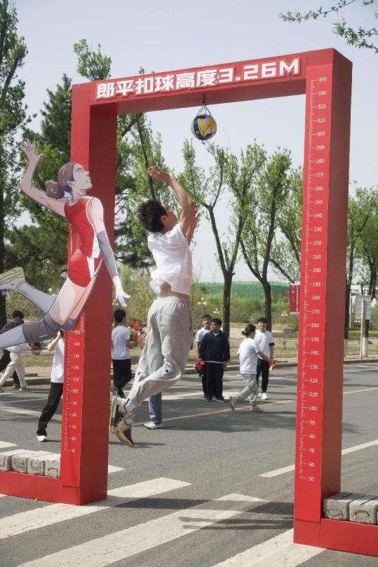 德赢vwin官方入口“女排精神”打卡点位包含三种活动形式:排球运动展示、游戏体验、排球操。运动展示区域,共有六名队员与一名裁判现场进行比赛,让打卡参与者直观感受排球比赛的热烈氛围,体验排球运动的魅力所在。游戏体验区域包含两项活动,分别是郎平扣球体验与双人默契滚球挑战。在郎平扣球体验中,参与者奋力起跳,尝试还原郎平教练经典动作;在双人默契挑战中,参与者两两组队、共同支撑,用身体滚动排球并向终点行进。排球操将啦啦操与排球元素相融合,队员以青春洋溢的舞姿,伴随现场激情四射的音乐,吸引打卡参与者驻足欣赏,展现经院女子活泼开朗、积极向上的精神面貌。
