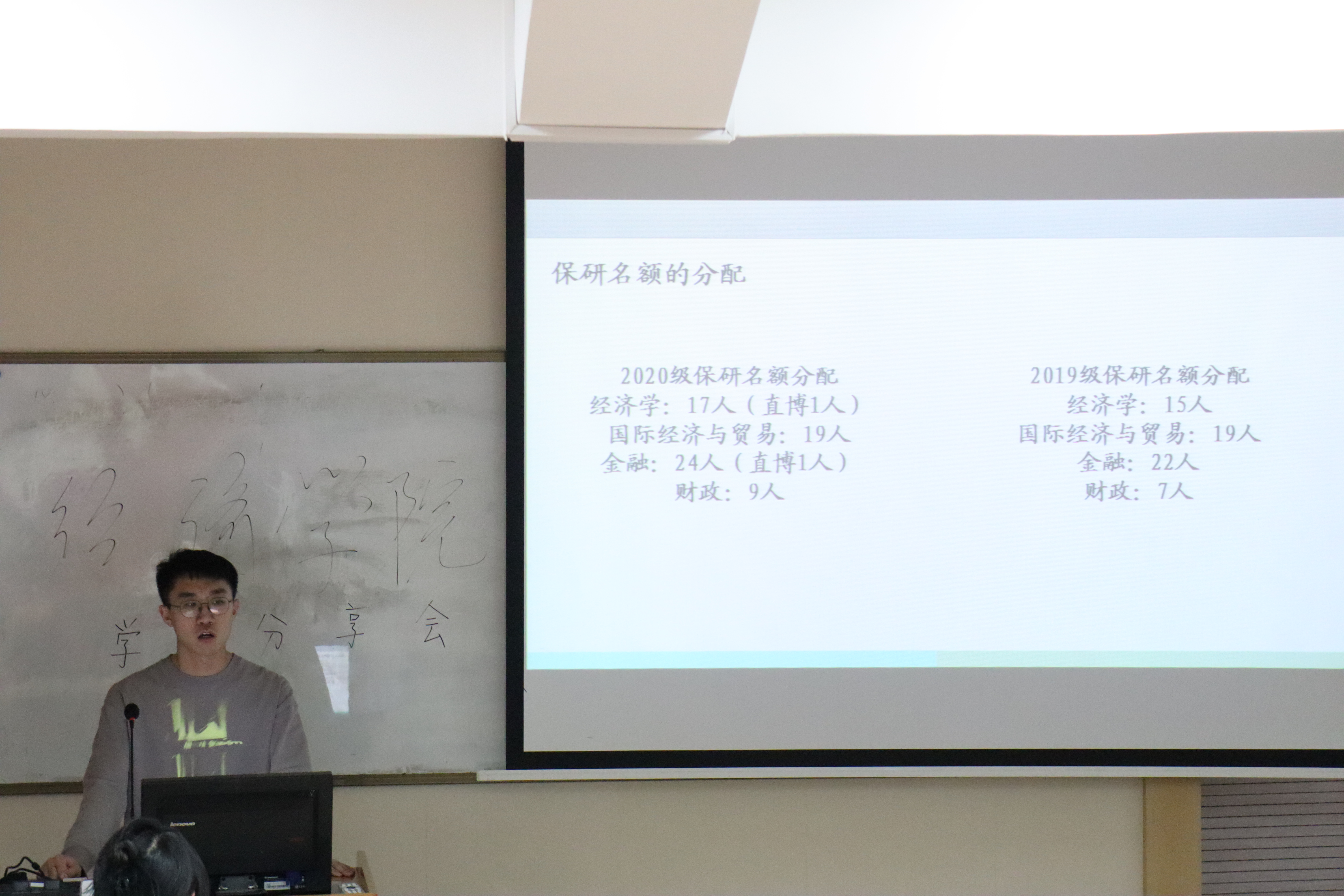 10月31日,团委学术部邀请了20级国际经济与贸易学系的从琪润同学做了有关本专业科目的经验分享,并在学业分享之余有详略地介绍了一些保研的经验。