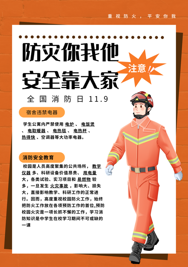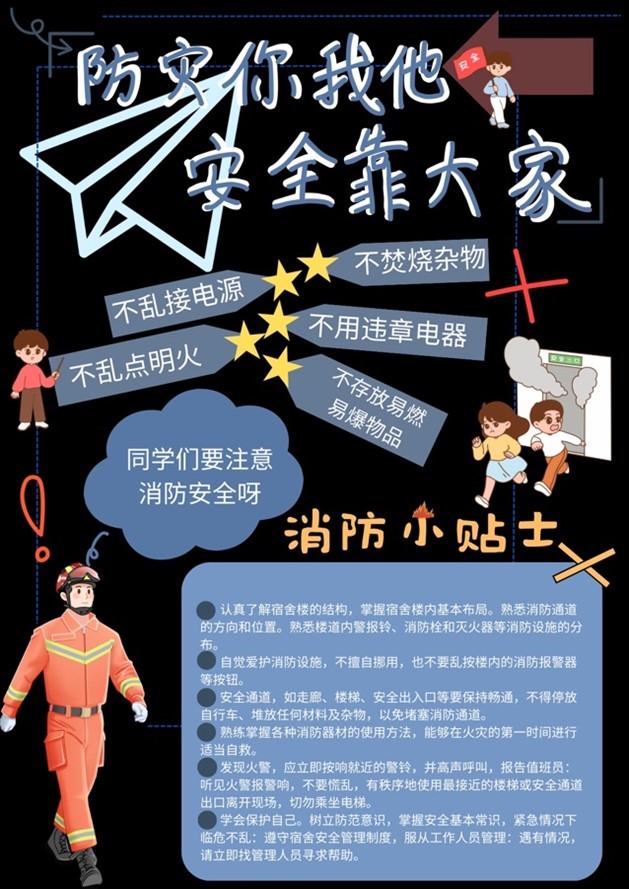为进一步学习消防安全相关知识,提高火灾安全防范意识和应急处置能力,增强对火灾灾害的预警能力和快速反应能力,德赢vwin官方入口团委宣传部于2023年11月9日至11月15日面向全院学生开展“防灾你我他,安全靠大家”消防宣传教育主题活动。