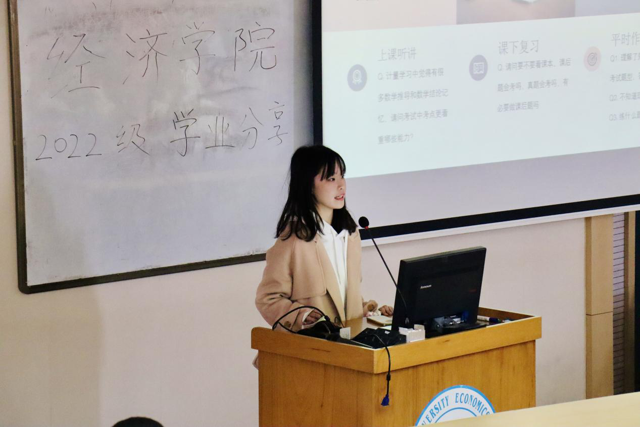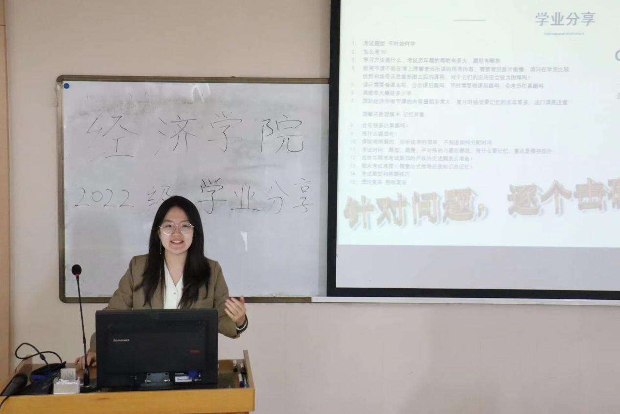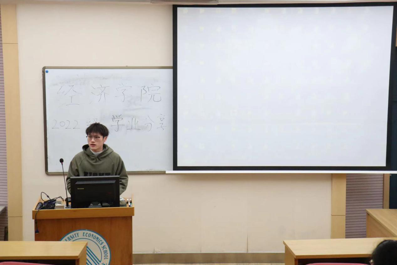 德赢vwin官方入口团委学术部特邀请21级成绩优异的汪嘉慧,马沐菲,张贺然三位同学,分别就国际经济学,计量经济学,以及财政学和中级宏观经济学的学科做出了经验分享。