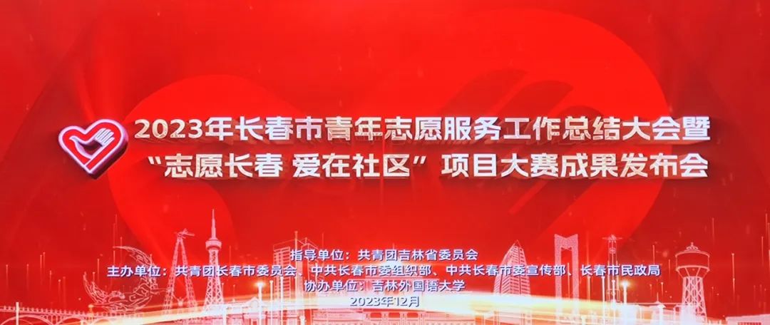 值此第38个国际志愿者日到来之际,12月5日,共青团长春市委员会、中共长春市委组织部、中共长春市委宣传部、长春市民政局共同主办的2023年长春市青年志愿服务工作总结大会暨“志愿长春 爱在社区”项目大赛成果发布会在吉林外国语大学举办。市委副书记、宣传部部长赵明,团省委副书记董雅致,吉林外国语大学党委书记张建华,市委宣传部常务副部长徐宁,市委组织部副部长赵国俊,团市委书记张有,市民政局副局长冉明,团市委副书记徐志成,吉林外国语大学党委副书记苗晶出席活动。