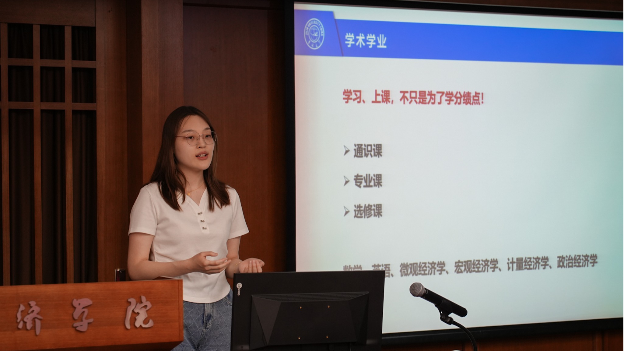 此次分享会聚焦于对同学们的思想引领和发展指导。会议中,分享嘉宾王婧仪同学细心地与同学们进行交谈,了解到参会同学们在学习、生活中遇到的障碍以及面对未来时的迷茫,随后针对同学们提出的问题进行逐一解答。在确认了参会学生们的问题均得到有效回应后,王婧仪同学又分别从学术学业、学生工作、社会实践、以及个人素养提升四个维度向会场中的学弟学妹们提出了自己的建议。王婧仪同学指出:“在大学生涯中,一定要注意综合能力的全面提升,多去体验未知的、多元的经历,走出校园、深入社会”,并与同学们分享了开展社会实践途径,传授给同学们宝贵的实践经验。