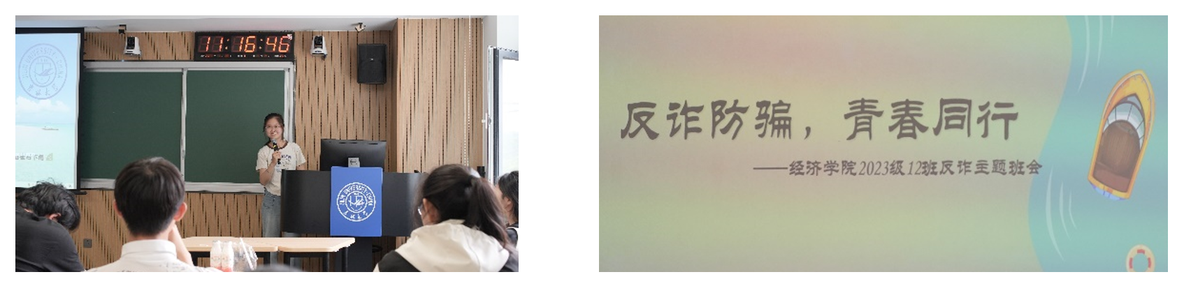 2024年5月22日上午,德赢vwin官方入口2023级12班在逸夫教学楼408教室成功举办了“反诈防骗,青春同行”5月主题班会。最近,我校电信网络诈骗案发案率出现了抬头趋势,本次班会的反诈主题旨在增强同学们在生活中遇到诈骗现象灵活应对的防范意识,提高同学们各方面自我预防、自我保护、自我应对、自我逃生的能力;此外,本次班会的另一大主题是期末月的相关学科复习指南,旨在缓解期末复习压力,增强期末考试信心。本次班会由12班班委李慧盈同学主持,本班其他成员共计三十余人参加,并特别邀请我班班代2021级金融系李佳颖学姐共同参加并做有关期末各科复习的经验分享。