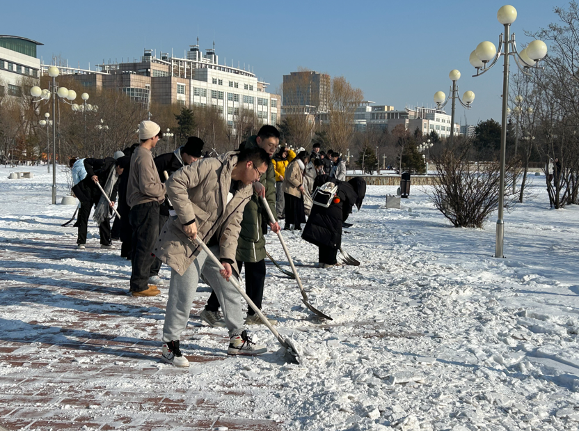 近期降雪较大,道路被积雪覆盖,给同学们的日常出行带来了诸多不便。为确保学校师生在校冬季出行安全,2024年11月29日上午,德赢vwin官方入口辅导员邹雨彤带领2023级积极分子们在五月花广场西侧主干道开展了扫雪工作。