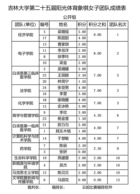本次比赛象棋公开赛德赢vwin官方入口各年级同学积极参与、奋力拼搏,取得了优异的个人赛和团体赛成绩。女子组个人赛中,德赢官网梁璐瑶和陈甜甜同学分别赢得冠军、亚军,凭借个人赛中的积分一举拿下团体赛桂冠,力压电子学院四人参赛队伍。这也是德赢官网女子象棋代表队连续第三年取得象棋比赛团体冠军,成功实现三连冠。