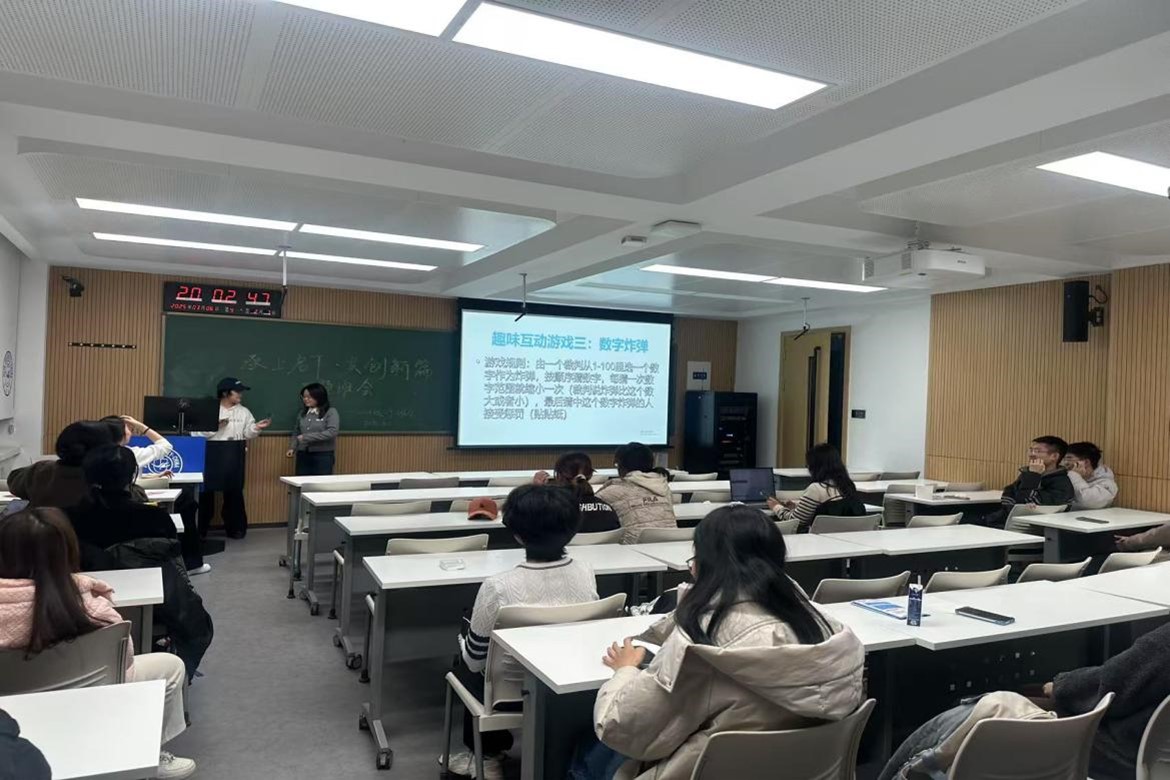 在“数字炸弹”游戏环节,同学们轮流猜数字,随着数字范围的不断缩小,现场的气氛也变得越来越紧张。每当有同学猜中“炸弹”时,都会引发一阵欢呼和欢笑声。在一系列紧张刺激的游戏过后,班会以三位抽中“炸弹”的同学的精彩的才艺表演展示后落下帷幕。