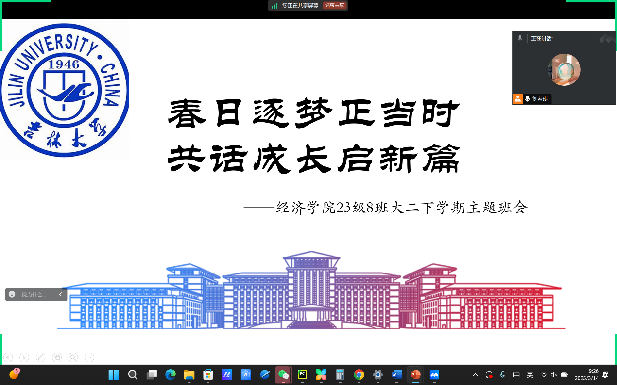 新学期伊始,德赢vwin官方入口2023级8班师生齐聚线上开展了本学期的首次班会。此次班会由班主任刘佳丽主持,围绕学业、生活等多方面内容,帮助同学答疑解惑,做好合理规划。