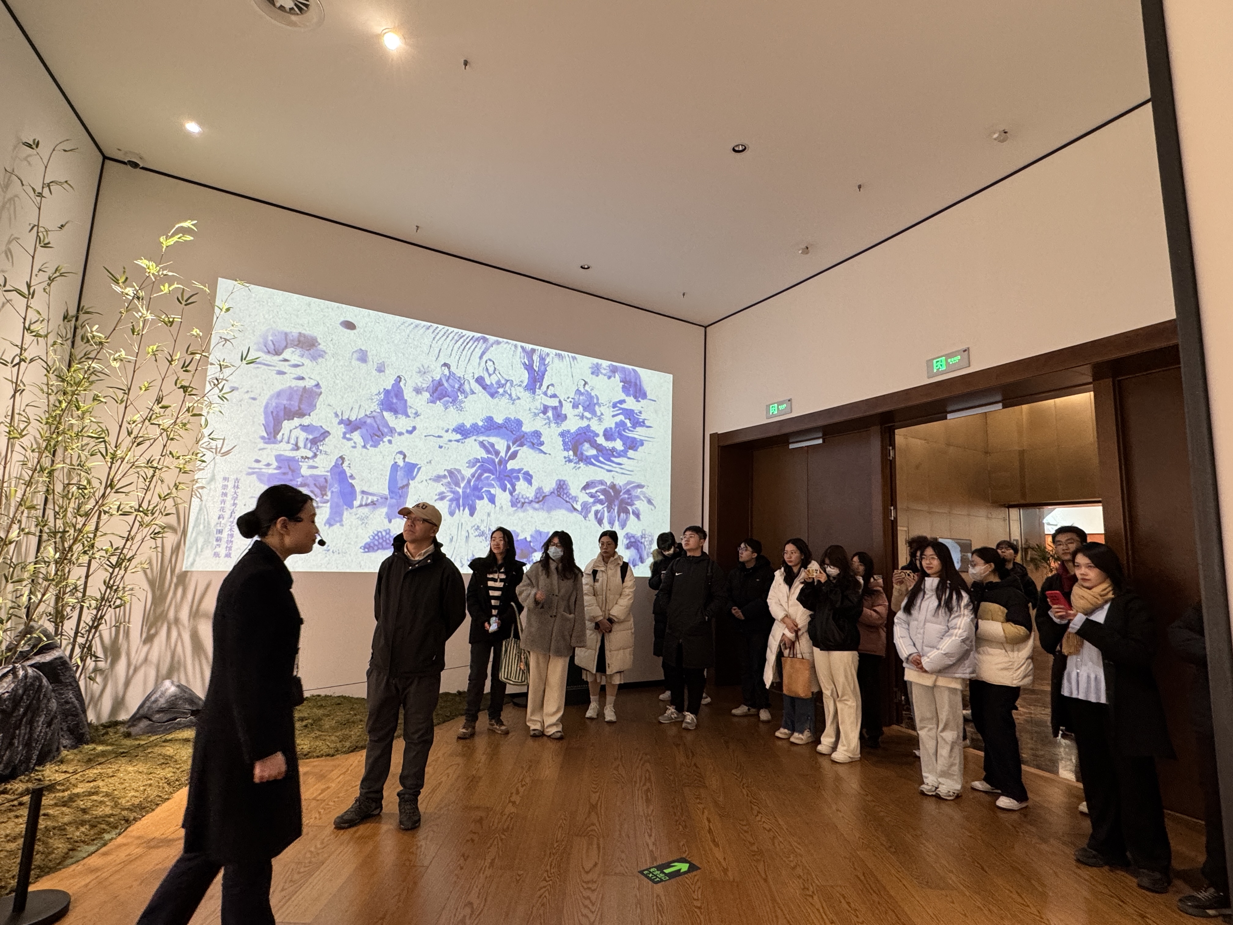 随后,大家移步至“春和景明——馆藏明清精品瓷器展”展厅。这里的展品分为“春生”“春暖”“春妍”三个单元,瓷器与书法、古诗词、古典音乐巧妙结合,同学们不仅欣赏到瓷器的精美绝伦,更领略到中华文化的博大精深。同学们围在展品前,热烈讨论着瓷器上的图案、工艺以及背后的文化内涵。