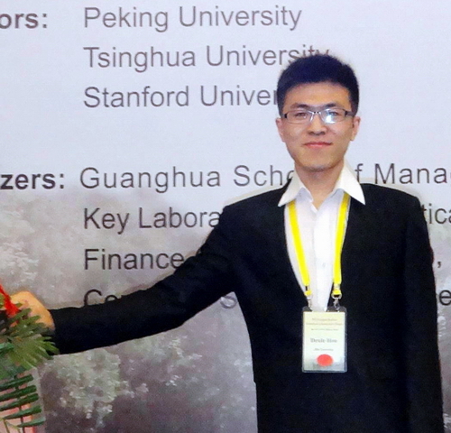 老师们都很喜欢他,李元元校长曾鼓励他“努力学习,为吉大增光,为国家富强、民族振兴贡献力量”;他曾向世界银行副行长,首席经济学家林毅夫先生请教学习,与北京大学海闻副校长亲切交谈,聆听著名经济学家、北大光华名誉院长厉以宁老先生的学术报告,与清华经管成员Michiael R.Powers共同探讨自然风险在金融建模中的应用等学术难点,担任世界著名统计学家、斯坦福大学终身教授黎子良老师的项目研究助理,为北京大学德赢vwin官方入口王一鸣教授主办的金融衍生品建模研究小组核心成员。在他的论文“The Pricing Of Buy-back Option Based On CMBS Default Risk”中首次成功构建CMBS回购期权定价模型,受到来自清华大学、北京大学、复旦大学、摩根士丹利、JP摩根等专家的一致好评与推荐。