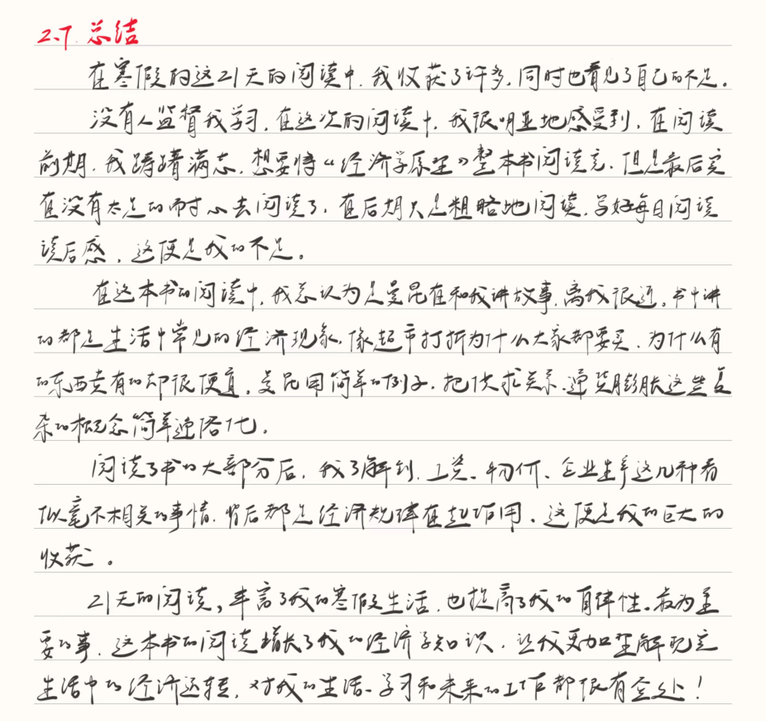 透过大量优秀的打卡记录,经小探看到了同学们一个多月的坚持与努力。这些成果不仅展现了同学们扎实的阅读功底和深入的思考能力,更体现了大家对经济学的浓厚兴趣和执着追求。一起来看看同学们的优秀打卡记录吧~~
