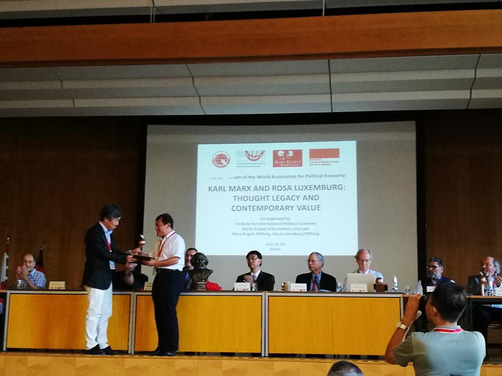 2018年7月15-24日,世界政治经济学会(WAPE)第13届论坛先后在德国柏林经济政法大学、特里尔马克思故居博物馆、奥地利维也纳大学成功举行,论坛由世界政治经济学学会、德国柏林经济政法大学、罗莎·卢森堡基金会、马克思恩格斯研究基金会、奥地利维也纳大学、奥地利转型组织、欧洲中国研究会共同主办,论坛主题是“马克思和卢森堡——思想遗产与当代价值”。来自中国、俄罗斯、日本、印度、以色列、美国、加拿大、德国、英国、意大利、法国、奥地利、瑞士、芬兰、爱尔兰、希腊、土耳其、西班牙、波兰、南非、墨西哥、巴西、澳大利亚等20多个国家的近200名学者出席了本次论坛。