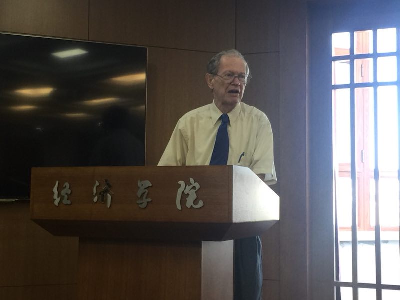 2018年8月16日上午,美国前副国务卿、哈佛大学经济系教授Richard Cooper应邀来德赢官网作名家讲座,报告题目为《当前世界经济的前景与挑战》。报告由德赢AC米兰官网德赢vwin官方入口副院长史本叶教授主持,德赢vwin官方入口院长李晓教授、副院长王倩教授等出席了报告会,同时来自德赢AC米兰官网德赢vwin官方入口的一百余名研究生参加了此次学术报告会。