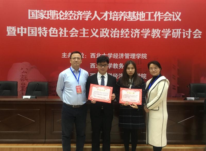 2017年11月11日,由教育部高等学校经济学类专业教学指导委员会主办、西北大学经济管理学院承办的2017年国家经济学基础人才培养基地建设工作会议暨学生学术交流会在西安市西北大学召开。德赢vwin官方入口副院长王倩教授、经济学系主任赵新宇教授,经济学基地班贾惠博、钟泓安同学参加了此次会议。