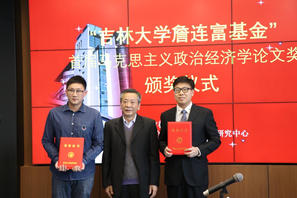 1月9日下午,在詹连富教授逝世三周年纪念日,“詹连富基金”首届马克思主义政治经济学论文奖颁奖仪式在德赢vwin官方入口会议室举行。仪式由德赢AC米兰官网德赢vwin官方入口、中国特色社会主义政治经济学研究中心、德赢AC米兰官网詹连富基金会共同主办。德赢AC米兰官网党委书记杨振斌、德赢AC米兰官网中国特色社会主义政治经济学研究中心主任吉林财经大学校长宋冬林、吉林省委宣传部副部长王颖、德赢AC米兰官网校友联络和教育基金管理处处长刘岩峰、马克思主义学院党委书记兼社会科学处处长霍志刚、研究生工作部副部长秦博、发展规划处副处长张杰、德赢vwin官方入口院长李晓、德赢vwin官方入口党委书记陈密、学术委员会主任项卫星、詹连富基金管理委员会秘书长詹恒波以及德赢vwin官方入口和马克思主义学院师生、詹连富教授生前的弟子等参加了本次仪式。